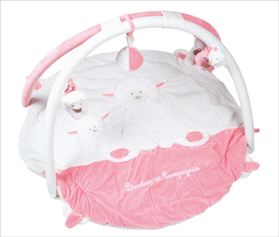 バーには鏡や音が出るおもちゃがセットされています。 おもちゃは取り外せるので ベビーカーやベビーベッドに付けることができます。