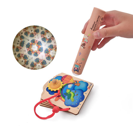 レンズを覗くと不思議な景色が見えてくる万華鏡。クルクル回しながら覗くと、身の回りのものが立体的に見えたり、美しい模様を描いたりと、お子さまの好奇心を引き出します。