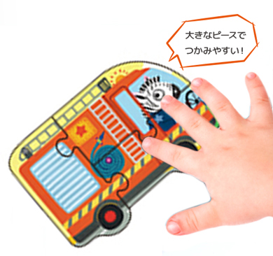 町や海ではたらく乗り物たちのピースは、1匹に要するピースの数が、2ピース・3ピース・4ピース・5ピースと難易度が高くなっていくように作られていて、乗り物たちのピースだけでも楽しめます。