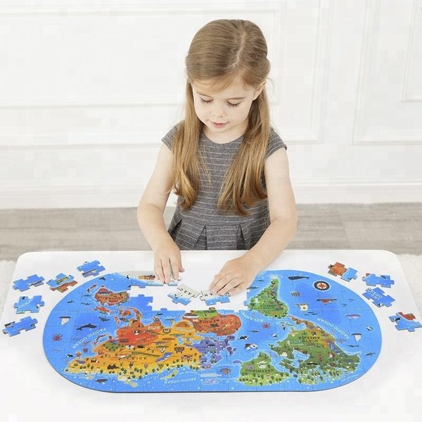 世界地図がイラストになった100ピースパズル。