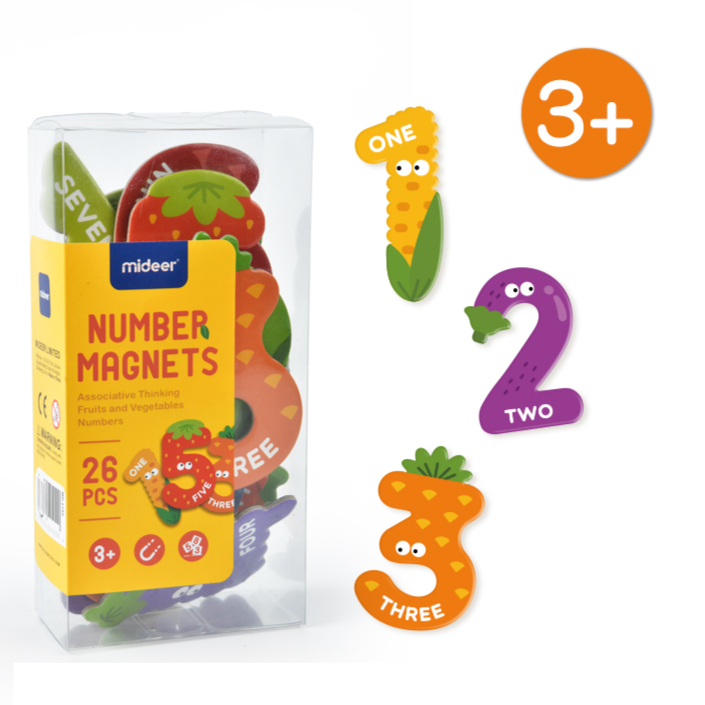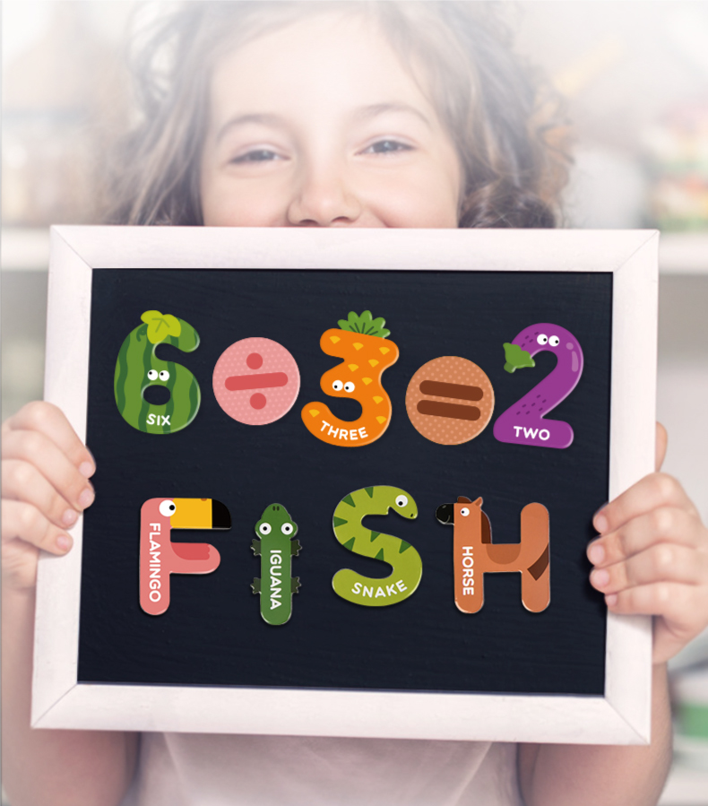 すうじの文字がイラストになったマグネット。