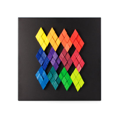 全12色/72コのダイアモンド型木製マグネット。