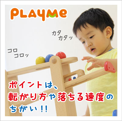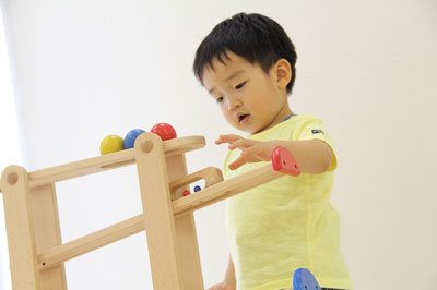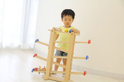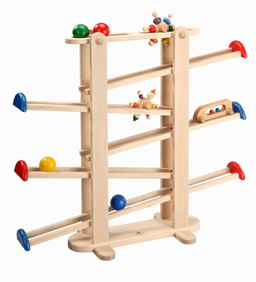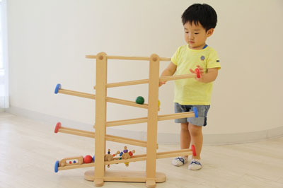 スロープを転がるおもちゃはみんな大好き!