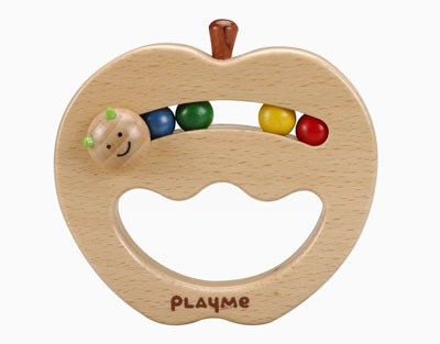 握って振るとイモ虫くんの体部分(4色の玉)がカタカタと動きます。