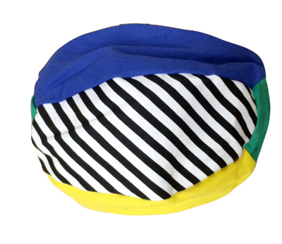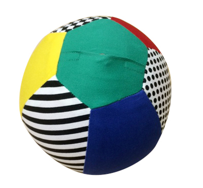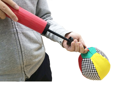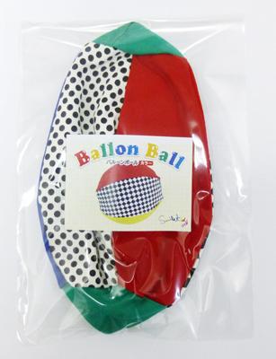 風船を布地の中に入れて膨らませると丈夫なボールになります。風船なので、ゴムボールよりもポンポン跳ね、軽いので赤ちゃんの時期からも楽しめます。